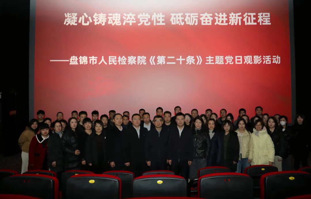 为进一步深入学习贯彻习近平法治思想,弘扬法治精神,让检察履职更加有温度,3月4日,盘锦市人民检察院组织开展“凝心铸魂淬党性 砥砺奋进新征程”主题党日暨“三八”妇女节观影活动,组织全体干警观看法治题材电影《第二十条》。