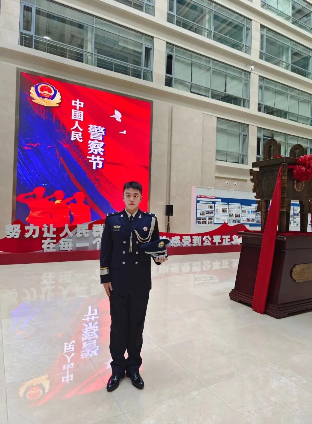 很荣幸加入检察院司法警察队伍中,作为一名新警,在喜迎人生第一个警察节的同时,心中时刻提醒自己要扣好廉洁从检“第一粒扣子”,在岗位中发挥特长,永葆工作激情和对法律的热爱,展现青年干警奋发上进的精神面貌,坚定理想信念,坚持终身学习,强化责任担当,努力为检察事业做出应有的贡献,用实际行动谱写司法警察藏蓝之歌,点缀平安盘锦的温暖灯火。